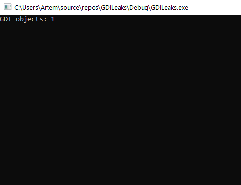 std::cout << "GDI objects: " << gdiObjectsCount << std::endl;
